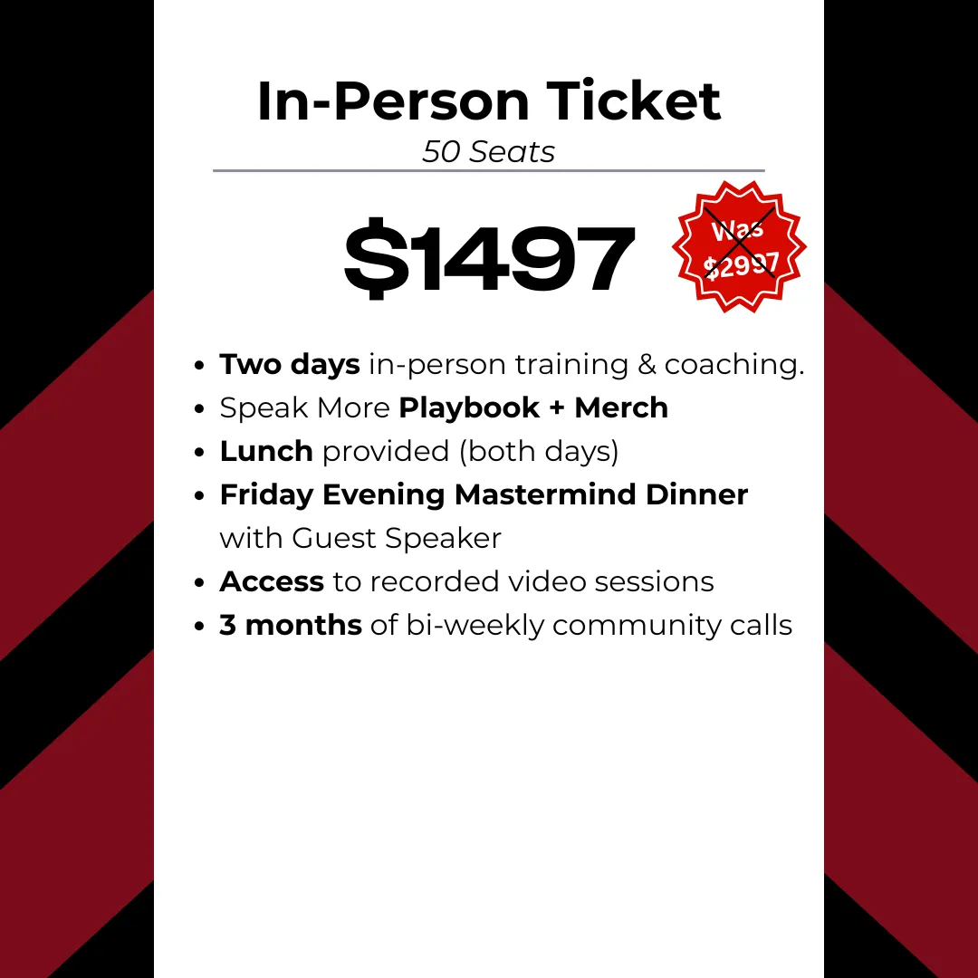 At Ready For Center Stage you’ll learn the strategies, structures, and systems to deliver a message that compels and sells—without feeling pushy or performative.